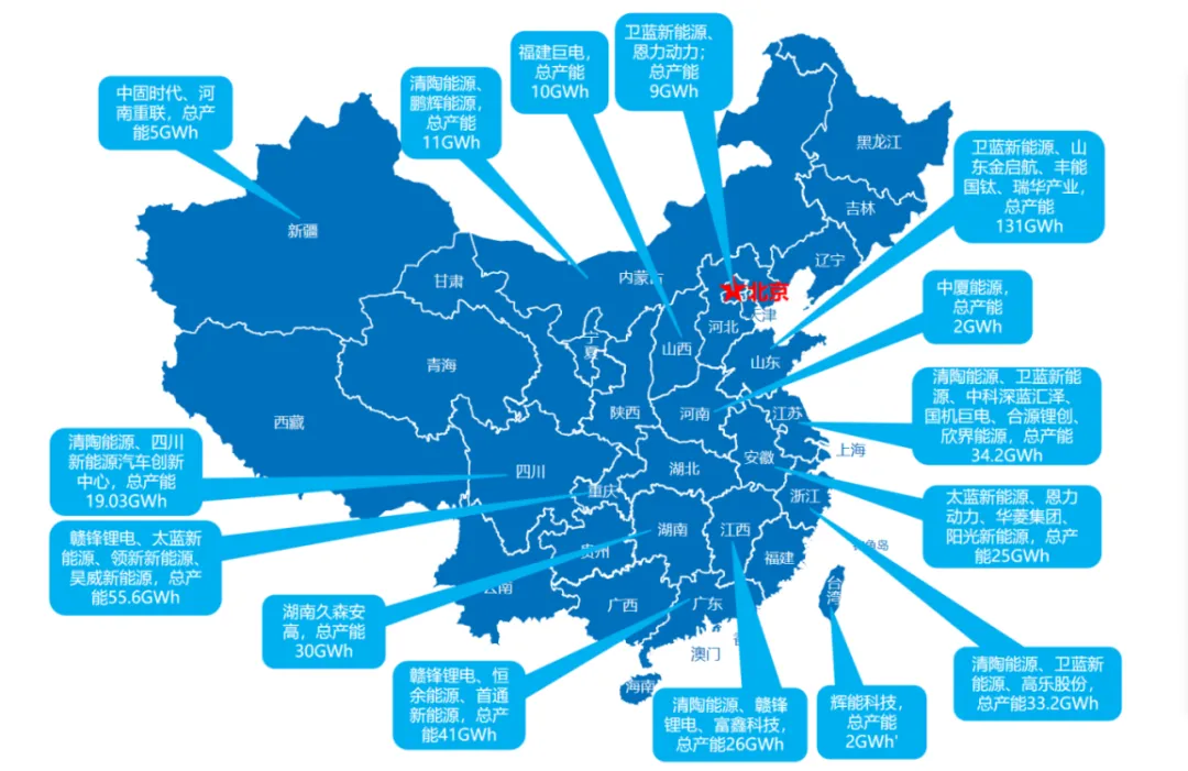 圖3 中國(半)固態電池產能(含規劃)分布圖