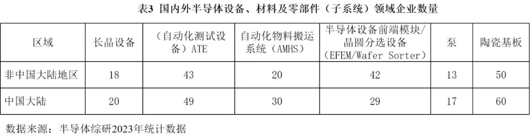 一是結構性“內卷化”為主。集成電路支撐業的“內卷化”集中在熱點品類上,例如硅片長晶設備;半導體前道設備中的濕法、薄膜、化學機械拋光(CMP)設備及耗材、熱處理、量檢測設備、后道設備中的ATE、劃片機等;半導體材料里的大硅片、特氣和化學品、陶瓷基板等;零部件和子系統中的AMHS(自動化物料搬運系統)、閥門、泵、硅結構件、EFEM(半導體設備前端模塊)、石英件等。幾乎每個領域國內企業數量都超過10家,最多的領域高達四五十家。而在部分技術難度較高,國內研發資源有限,或者國內龍頭企業優勢已經非常明顯的領域,例如涂膠顯影設備、離子注入設備、PVD(物理氣相沉積設備)、靜電吸盤等領域,則鮮少看到“內卷化”的發生。