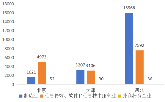 根據(jù)天眼查數(shù)據(jù),一季度,京津冀三地制造業(yè)新設(shè)企業(yè)20794家,信息傳輸、軟件和信息技術(shù)服務(wù)業(yè)新設(shè)企業(yè)15671家,總計(jì)36465家,較上年同期增長(zhǎng)90.2%。新設(shè)制造業(yè)企業(yè)中,醫(yī)藥制造業(yè)325家,汽車制造業(yè)645家,計(jì)算機(jī)、通信和其他電子設(shè)備制造業(yè)870家,專用設(shè)備等裝備制造業(yè)4003家。在招引外商投資企業(yè)方面,京津冀三地新設(shè)立外商投資企業(yè)669家,其中制造業(yè)53家,信息傳輸、軟件和信息技術(shù)服務(wù)業(yè)65家,分別較上年同期增長(zhǎng)60.6%和58.5%。