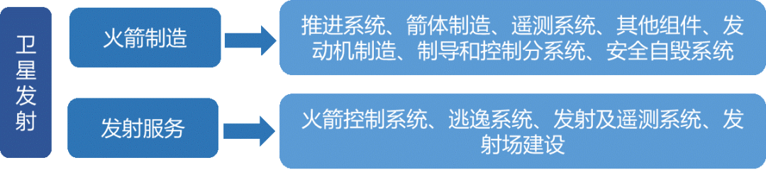 衛星發射環節包括火箭制造和發射服務,具體細分領域如下。