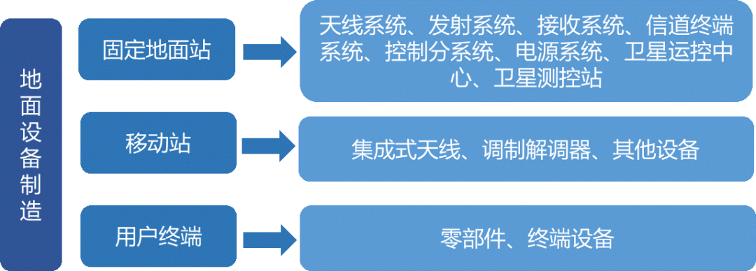 地面設備主要包括固定地面站、移動式地面站(靜中通、動中通等)以及用戶終端,具體細分領域如下。