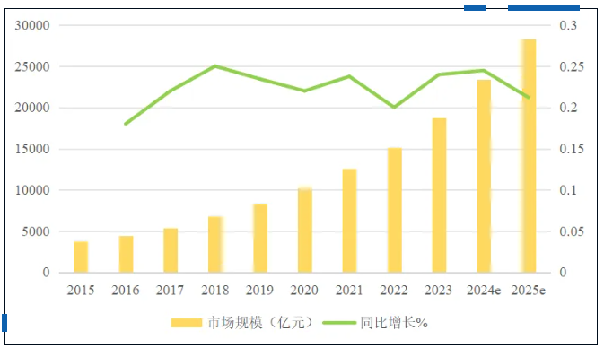 圖3 2015-2025年中國商業(yè)航天市場規(guī)模及增長率