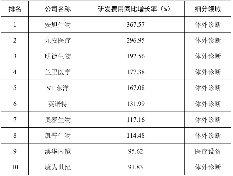 表3  2022年研發費用同比增長率TOP10