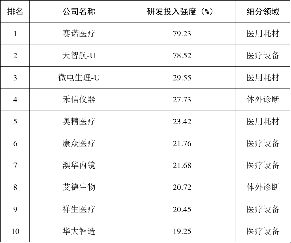表4  2022年研發投入強度TOP10