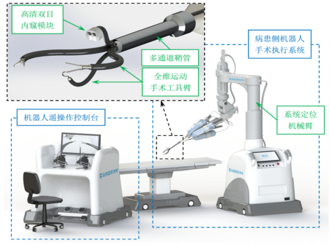 手術機器人主要包括操作控制臺、機械臂系統、成像系統、動力與傳感系統等核心部件。操作控制臺作為醫生與機器交互的核心平臺,是機器人的“大腦”;機械臂直接接觸患者,是機器人的“雙手”;成像系統具有3D立體視覺、熒光導航、影像融合功能,是機器人的“眼睛”;動力與傳感系統決定了操作精度、安全性和人機交互能力,是機器人的“心臟與神經”。
