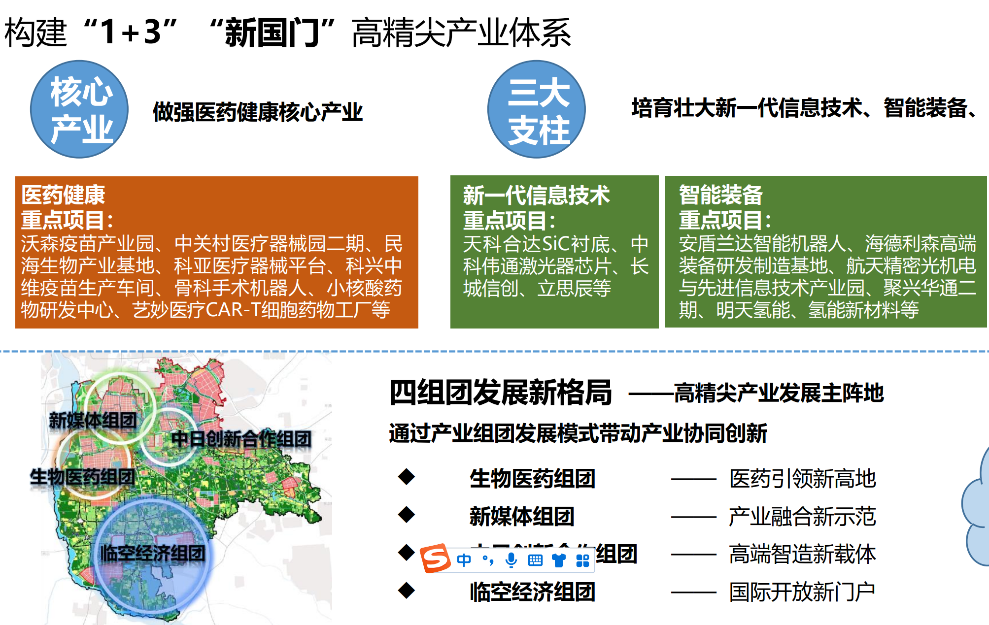 規(guī)劃梳理總結(jié)大興區(qū)高精尖產(chǎn)業(yè)現(xiàn)狀和形勢(shì),提出大興區(qū)未來(lái)發(fā)展思路目標(biāo)、重點(diǎn)方向和布局、發(fā)展路徑及保障措施。即把握北京“兩區(qū)”建設(shè)重大契機(jī),深入實(shí)施“產(chǎn)業(yè)強(qiáng)區(qū)”戰(zhàn)略,充分發(fā)揮機(jī)場(chǎng)交通樞紐新門戶作用,做強(qiáng)醫(yī)藥健康核心產(chǎn)業(yè),培育新一代信息技術(shù)、智能裝備和科技服務(wù)支柱產(chǎn)業(yè),構(gòu)建“1+3”高精尖產(chǎn)業(yè)體系,打造科技創(chuàng)新“新高地”、首都發(fā)展“新空間”、對(duì)外開(kāi)放“新門戶”。